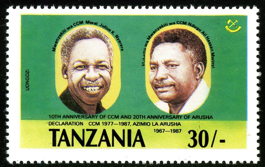 Visibility: public Image owner: none postage 4/10/1987 30sh multi issue=10th Anniversary of the Revolution Party - The 20th Anniversary of the Declaration of Arusha unwmk perf=14.25x14 Crops No visible images cropped from this one. Measurements Resolution is unknown. Source Source name: Colnect File URL: http://i.colnect.net/b/1832/666/President-Nyerere-and-Nduyu-Ali-Hassan-Mwinyi.jpg Uploaded November 25, 2013, 4:21 pm by Stan Shebs |