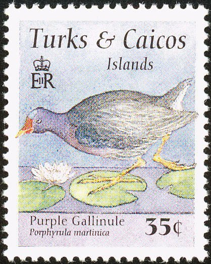 Visibility: public Image owner: none postage 8/2/1995 35c multi dt=birds (1995 Turks & Caicos Islands) d=Porphyrio martinica (1995) wmk=mult crown & script CA Crops No visible images cropped from this one. Measurements Resolution is unknown. Source Source name: Colnect File URL: http://i.colnect.net/b/1764/388/Purple-Gallinule-Porphyrio-porphyrio.jpg Uploaded November 25, 2013, 6:42 pm by Stan Shebs |