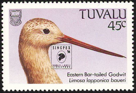 Visibility: public Image owner: none postage 8/31/1994 45c multi issue=Singpex '94 dt=birds (1988 Tuvalu) d=eastern bar-tailed godwit Limosa lapponica baueri on=issue=1988-45c unwmk perf=15 Crops No visible images cropped from this one. Measurements Resolution is unknown. Source Source name: Colnect File URL: http://i.colnect.net/b/1767/990/Bar-tailed-Godwit Limosa-lapponica -.jpg Uploaded November 25, 2013, 7:28 pm by Stan Shebs |