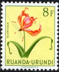 Visibility: public Image owner: none postage 3/1/1953 8fr multi dt=flowers (1953 RuandaUrundi) d=Gloriosa unwmk Crops No visible images cropped from this one. Measurements Resolution is unknown. Source Source name: Colnect File URL: http://i.colnect.net/b/1087/525/Gloriosa.jpg Uploaded August 21, 2014, 5:34 pm by Stan Shebs |