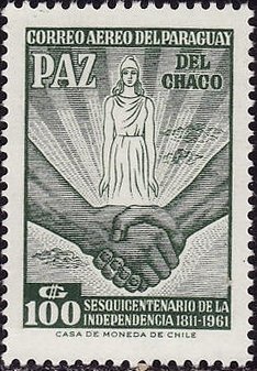Visibility: public Image owner: none Crops No visible images cropped from this one. Measurements Resolution is unknown. Source Source name: Colnect File URL: http://i.colnect.net/b/1701/962/Independence-and-Chaco-Peace.jpg Uploaded November 26, 2013, 6:43 pm by Stan Shebs |