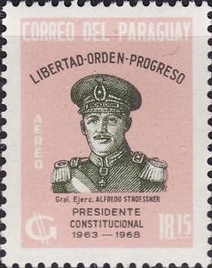 Visibility: public Image owner: none postage 8/6/1963 18.15g pnk&dkgrn issue=Re-election of President Stroessner to Third Term of Office unwmk perf=11 Crops No visible images cropped from this one. Measurements Resolution is unknown. Source Source name: Colnect File URL: http://i.colnect.net/b/1855/808/Alfredo-Stroessner-1912-2006.jpg Uploaded November 26, 2013, 6:50 pm by Stan Shebs |