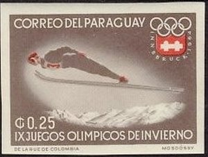 Visibility: public Image owner: none postage 10/28/1963 0.25g brn&red issue=Winter Olympics 1964 unwmk imperf Crops No visible images cropped from this one. Measurements Resolution is unknown. Source Source name: Colnect File URL: http://i.colnect.net/b/1855/811/Ski-Jumper.jpg Uploaded November 26, 2013, 6:50 pm by Stan Shebs |