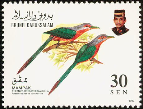 Visibility: public Image owner: none postage 5/3/1993 30s multi dt=birds (1993 Brunei) d=Phaenicophaeus curvirostris unwmk Crops No visible images cropped from this one. Measurements Resolution is unknown. Source Source name: Colnect File URL: http://i.colnect.net/b/1473/782/Chestnut-breasted-Malkoha-Phaenicophaeus-curvirostris.jpg Uploaded November 26, 2013, 9:50 pm by Stan Shebs |