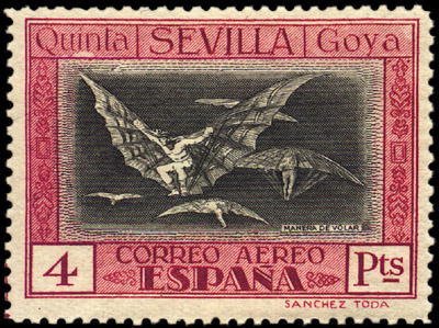 Visibility: public Image owner: none airmail 6/15/1930 4p car&blk issue=Goya death 100th unwmk perf=12.5 Crops No visible images cropped from this one. Measurements Resolution is unknown. Source Source name: Colnect File URL: http://i.colnect.net/b/1767/224/Age-of-Goya-Seville-Exhibition.jpg Uploaded November 30, 2013, 7:30 am by Stan Shebs |
