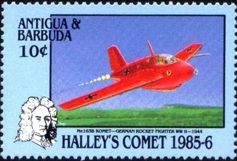 Visibility: public Image owner: none postage 3/24/1986 10c multi issue=Halley's Comet d=Me 163B Komet wmk=St Edwards crown & CA perf=14 Crops No visible images cropped from this one. Measurements Resolution is unknown. Source Source name: Colnect File URL: http://i.colnect.net/b/1775/019/Me-163B-Komet.jpg Uploaded December 3, 2013, 6:56 pm by Stan Shebs |