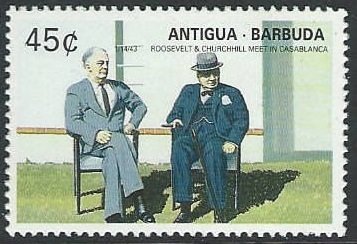Visibility: public Image owner: none postage 3/11/1991 45c multi issue=World War II d=Roosevelt and Churchill unwmk perf=14 Crops No visible images cropped from this one. Measurements Resolution is unknown. Source Source name: Colnect File URL: http://i.colnect.net/b/1831/994/Roosevelt-and-Churchill.jpg Uploaded December 3, 2013, 7:14 pm by Stan Shebs |