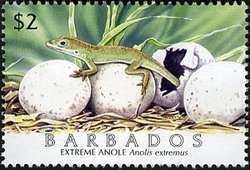 Visibility: public Image owner: none postage 11/28/2005 $2 multi issue=Extreme Anole dt=extreme anole d=extreme anole on eggs wmk=crown & CA spiral Crops No visible images cropped from this one. Measurements Resolution is unknown. Source Source name: Colnect File URL: http://i.colnect.net/b/1756/424/Barbados-Anole-Anolis-extremus.jpg Uploaded December 4, 2013, 2:31 am by Stan Shebs |