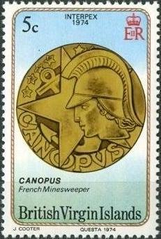 Visibility: public Image owner: none postage 3/22/1974 5c multi issue=INTERPEX 1974 dt=Naval Crests d=badge of French Minesweeper "Canopus" wmk=mult crown & script CA Crops No visible images cropped from this one. Measurements Resolution is unknown. Source Source name: Colnect File URL: http://i.colnect.net/images/b/1591/072/Minesweeper-Canopus.jpg Uploaded December 4, 2013, 6:40 pm by Stan Shebs |