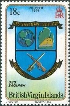 Visibility: public Image owner: none postage 3/22/1974 18c multi issue=INTERPEX 1974 dt=Naval Crests d=crest of USS Saginaw wmk=mult crown & script CA Crops No visible images cropped from this one. Measurements Resolution is unknown. Source Source name: Colnect File URL: http://i.colnect.net/images/b/1591/073/USS-Saginaw.jpg Uploaded December 4, 2013, 6:40 pm by Stan Shebs |