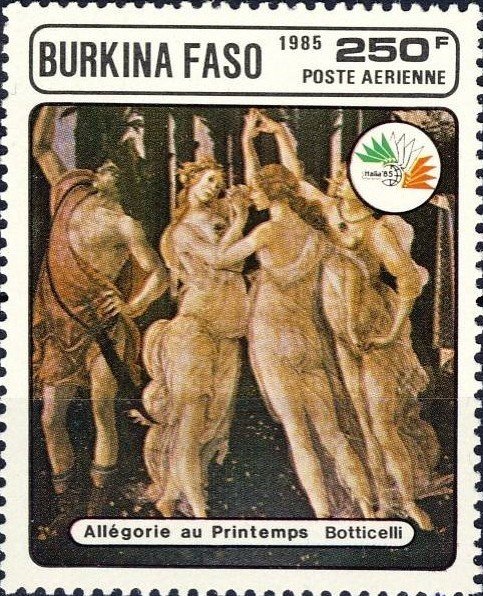 Visibility: public Image owner: none postage 10/25/1985 250fr dt=Botticelli paintings unwmk Crops No visible images cropped from this one. Measurements Resolution is unknown. Source Source name: Colnect File URL: http://i.colnect.net/b/1753/880/Allegory-of-Spring.jpg Uploaded December 4, 2013, 8:16 pm by Stan Shebs |