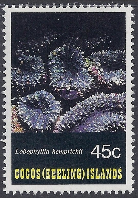 Visibility: public Image owner: none postage 1/28/1993 45c multi dt=corals (1993 Cocos (Keeling) Islands) unwmk Crops No visible images cropped from this one. Measurements Resolution is unknown. Source Source name: Colnect File URL: http://i.colnect.net/b/1726/033/Lobed-Brain-Coral-Lobophyllia-hemprichii.jpg Uploaded December 5, 2013, 5:29 pm by Stan Shebs |