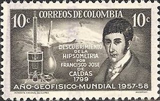 Visibility: public Image owner: none postage 5/12/1958 10c blk issue=International Geophysical Year d=Francisco Jose de Caldas & hypsometer unwmk perf=12 Crops No visible images cropped from this one. Measurements Resolution is unknown. Source Source name: Colnect File URL: http://i.colnect.net/b/1779/173/Francisco-Jose-de-Caldas-and-Hypsometer.jpg Uploaded December 5, 2013, 6:02 pm by Stan Shebs |