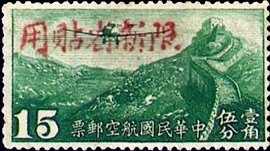 Visibility: public Image owner: none airmail 11/30/1942 15c graygrn issue=1942 air b unwmk Crops No visible images cropped from this one. Measurements Resolution is unknown. Source Source name: Colnect File URL: http://i.colnect.net/b/1841/117/Airplane-over-Great-Wall-Overprint-in-Red.jpg Uploaded December 5, 2013, 8:01 pm by Stan Shebs |