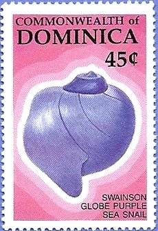 Visibility: public Image owner: none postage 5/11/1987 45c multi dt=sea shells (1987 Dominica) d=Swainson globe purple sea snail wmk=mult crown & script CA perf=15 Crops No visible images cropped from this one. Measurements Resolution is unknown. Source Source name: Colnect File URL: http://i.colnect.net/b/1789/503/Purple-Sea-Snail--Janthina-sp-.jpg Uploaded December 5, 2013, 9:43 pm by Stan Shebs |