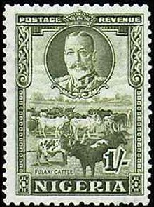 Visibility: public Image owner: none postage 2/1/1936 1sh olgrn issue=George V pictorials d=Fulani Cattle wmk=mult crown & script CA perf=11.75x13.25 Crops No visible images cropped from this one. Measurements Resolution is unknown. Source Source name: Colnect File URL: http://i.colnect.net/b/1234/670/Fulani-Cattle-Bos-primigenius-indicus.jpg Uploaded August 21, 2014, 6:08 pm by Stan Shebs |