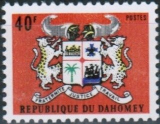 Visibility: public Image owner: none postage 40fr multi issue=Coat of Arms of Dahomey unwmk Crops No visible images cropped from this one. Measurements Resolution is unknown. Source Source name: Colnect File URL: http://i.colnect.net/images/b/1842/350/Coat-of-Arms.jpg Uploaded December 8, 2013, 6:24 pm by Stan Shebs |