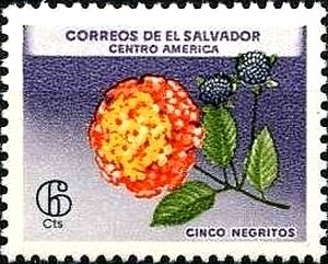 Visibility: public Image owner: none postage 1/6/1965 6c multi issue=flowers 1965 dt=flowers (1965 El Salvador) d=Cinco Negritos unwmk Crops No visible images cropped from this one. Measurements Resolution is unknown. Source Source name: Colnect File URL: http://i.colnect.net/b/1680/740/Cinco-Negritos.jpg Uploaded December 12, 2013, 6:18 pm by Stan Shebs |