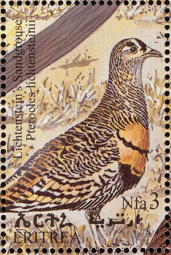 Visibility: public Image owner: none postage 3/16/1998 3n multi issue=Birds 1998 dt=birds (1998 Eritrea) d=Pterocles lichtensteinii Crops No visible images cropped from this one. Measurements Resolution is unknown. Source Source name: Colnect File URL: http://i.colnect.net/b/1744/741/Lichtenstein-s-Sandgrouse-Pterocles-lichtensteinii.jpg Uploaded December 12, 2013, 6:52 pm by Stan Shebs |
