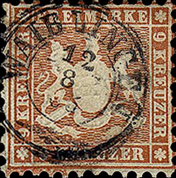 Visibility: public Image owner: none postage 9kr yelbrn d=arms of Württemberg unwmk perf=10 Crops No visible images cropped from this one. Measurements Resolution is unknown. Source Source name: Colnect File URL: http://i.colnect.net/b/1302/603/W-uuml-rttemberg-coat-of-arms.jpg Uploaded December 16, 2013, 10:00 pm by Stan Shebs |