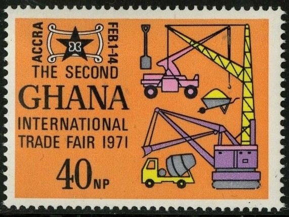 Visibility: public Image owner: none postage 2/5/1971 40np multi issue=2nd Ghana International Trade Fair d=Cranes & Trucks wmk=star & G mult Crops No visible images cropped from this one. Measurements Resolution is unknown. Source Source name: Colnect File URL: http://i.colnect.net/images/b/1888/191/Cranes-and-Trucks.jpg Uploaded December 17, 2013, 1:14 am by Stan Shebs |