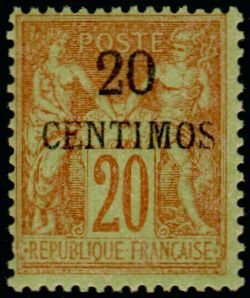 Visibility: public Image owner: none postage 1/1/1891 20c red pc=yelgrn issue=1891 d=Peace & Commerce var=N under U ovpt=value oc=blk on=issuer=France-1879-20c-red unwmk perf=14x13.5 Crops No visible images cropped from this one. Measurements Resolution is unknown. Source Source name: Colnect File URL: http://i.colnect.net/b/847/032/French-office.jpg Uploaded August 21, 2014, 6:29 pm by Stan Shebs |