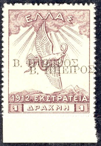 Visibility: public Image owner: none postage 12/1914 1d issue=1914 d=eagle of Zeus ovpt=B. EPIROS(greek) oc=blk on=issuer=Greece-issue=1912 occupation-1d unwmk perf=rouletted Crops No visible images cropped from this one. Measurements Resolution is unknown. Source Source name: Colnect File URL: http://i.colnect.net/b/1819/773/Overprint.jpg Uploaded December 20, 2013, 4:21 pm by Stan Shebs |