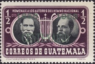 Visibility: public Image owner: none postage 11/1958 1/2c pur&blk issue=Ovalle 100th d=Ovalle & Palma ovpt=1858 1958//CENTENARIO oc=blk on=1953-1/2c-pur&blk unwmk Crops No visible images cropped from this one. Measurements Resolution is unknown. Source Source name: Colnect File URL: http://i.colnect.net/b/1861/565/Rafael-Alvarez-Ovalle-and-José-Joaquin-Palma-Lasso.jpg Uploaded December 21, 2013, 3:40 am by Stan Shebs |