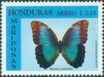 Visibility: public Image owner: none airmail 7/31/1997 2.15l multi issue=Butterflies and Moths 1997 d=Morpho peleides (1997 Honduras) unwmk Crops No visible images cropped from this one. Measurements Resolution is unknown. Source Source name: Colnect File URL: http://i.colnect.net/b/1552/211/Common-Morpho-Morpho-peleides.jpg Uploaded December 21, 2013, 7:11 am by Stan Shebs |