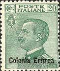 Visibility: public Image owner: none postage 20c grn issue=1908 d=Victor Emmanuel III (facing left) ovpt=Colonia Eritrea oc=blk on=issuer=Italy-1925-20c-grn wmk=crown (Italy) perf=14 Crops No visible images cropped from this one. Measurements Resolution is unknown. Source Source name: Colnect File URL: http://i.colnect.net/b/1641/945/Victor-Emmanuel-III.jpg Uploaded December 22, 2013, 5:04 am by Stan Shebs |