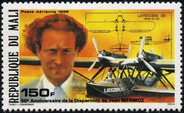 Visibility: public Image owner: none airmail 8/18/1986 150fr multi issue=50th Anniversary of Disappearance of Jean Mermoz d=Mermoz and "Croix du Sud" unwmk Crops No visible images cropped from this one. Measurements Resolution is unknown. Source Source name: Colnect File URL: http://i.colnect.net/b/1803/313/J-Mermoz-Plane.jpg Uploaded December 23, 2013, 5:33 pm by Stan Shebs |