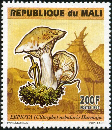 Visibility: public Image owner: none postage 9/12/1994 200fr multi issue=Plants 1994 dt=plants (1994 Mali) d=Clitocybe nebularis unwmk perf=13.25 Crops No visible images cropped from this one. Measurements Resolution is unknown. Source Source name: Colnect File URL: http://i.colnect.net/b/1863/082/Lepiota.jpg Uploaded December 23, 2013, 5:34 pm by Stan Shebs |