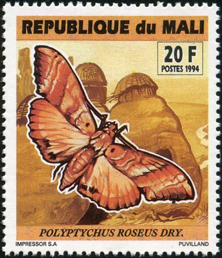 Visibility: public Image owner: none postage 9/12/1994 20fr multi issue=Insects 1994 dt=insects (1994 Mali) d=Polyptychus roseus (1994) unwmk perf=13.25 Crops No visible images cropped from this one. Measurements Resolution is unknown. Source Source name: Colnect File URL: http://i.colnect.net/b/1863/067/Moth-Polyptychus-roseus.jpg Uploaded December 23, 2013, 5:34 pm by Stan Shebs |