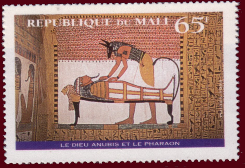 Visibility: public Image owner: none postage 8/24/1994 65fr multi dt=Works of Art (1994) unwmk Crops No visible images cropped from this one. Measurements Resolution is unknown. Source Source name: Colnect File URL: http://i.colnect.net/b/1732/127/Goddess-Anubis-and-the-pharaoh.jpg Uploaded December 23, 2013, 5:34 pm by Stan Shebs |