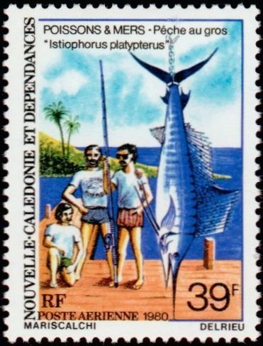 Visibility: public Image owner: none airmail 3/29/1980 39fr multi dt=fishes (1979 New Caledonia) d=Istiophorus platypterus (1980) unwmk Crops No visible images cropped from this one. Measurements Resolution is unknown. Source Source name: Colnect File URL: http://i.colnect.net/images/b/1830/448/Indo-Pacific-Sailfish-Istiophorus-platypterus.jpg Uploaded December 24, 2013, 10:00 pm by Stan Shebs |