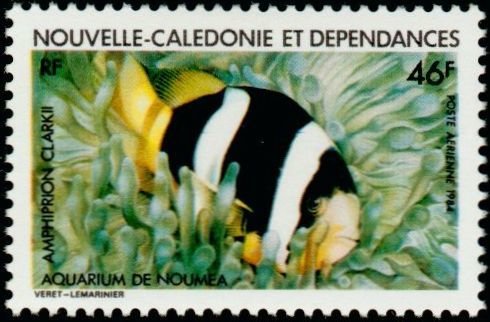 Visibility: public Image owner: none airmail 3/7/1984 46fr multi issue=Noumea Aquarium 1984 dt=fishes (1984 New Caledonia) d=Amphiprion clarkii (1984) unwmk Crops No visible images cropped from this one. Measurements Resolution is unknown. Source Source name: Colnect File URL: http://i.colnect.net/b/1830/805/Clark-s-Anemonefish-Amphiprion-clarkii.jpg Uploaded December 24, 2013, 10:04 pm by Stan Shebs |