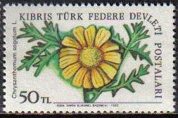 Visibility: public Image owner: none postage 1/22/1982 50tl multi issue=Flowers 1982 dt=flowers (1981 Turkish Republic of Northern Cyprus) d=Chrysanthemum segetum unwmk Crops No visible images cropped from this one. Measurements Resolution is unknown. Source Source name: Colnect File URL: http://i.colnect.net/b/1687/403/Chrysanthemum-segetum.jpg Uploaded December 26, 2013, 3:03 am by Stan Shebs |
