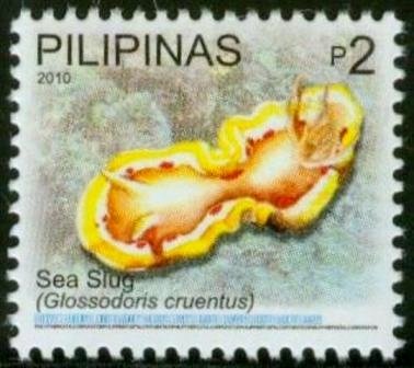 Visibility: public Image owner: none postage 4/16/2010 2p multi issue=Marine Biodiversity 2010 dt=marine life (2010 Philippines) d=Sea Slug Glossodoris cruentus unwmk perf=13.5 Crops No visible images cropped from this one. Measurements Resolution is unknown. Source Source name: Colnect File URL: http://i.colnect.net/b/1832/611/Nudibranch-Glossodoris-cruentus.jpg Uploaded December 26, 2013, 9:00 am by Stan Shebs |