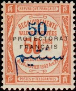 Visibility: public Image owner: none postage due 50c red issue=1915 postage due b d=numeral recouvrements oc=blk on=1911-50c unwmk perf=13 Crops No visible images cropped from this one. Measurements Resolution is unknown. Source Source name: Colnect File URL: http://i.colnect.net/images/b/847/116/French-protectorate-Tax.jpg Uploaded August 21, 2014, 7:49 pm by Stan Shebs |