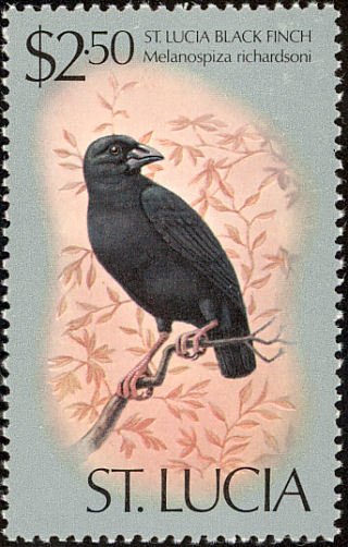 Visibility: public Image owner: none postage 5/7/1976 $2.50 multi dt=birds (1976 St. Lucia) d=Melanospiza richardsoni (1976) wmk=mult crown & script CA perf=14.5 Crops No visible images cropped from this one. Measurements Resolution is unknown. Source Source name: Colnect File URL: http://i.colnect.net/b/1506/983/St-Lucia-Black-Finch-Melanospiza-richardsoni.jpg Uploaded December 27, 2013, 3:25 am by Stan Shebs |