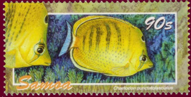 Visibility: public Image owner: none postage 9/29/2004 90s multi dt=fishes (2004 Samoa) d=Chaetodon punctatofasciatus unwmk Crops No visible images cropped from this one. Measurements Resolution is unknown. Source Source name: Colnect File URL: http://i.colnect.net/b/1724/389/Spot-banded-Butterflyfish-Chaetodon-punctatofasciatus.jpg Uploaded December 27, 2013, 7:18 am by Stan Shebs |