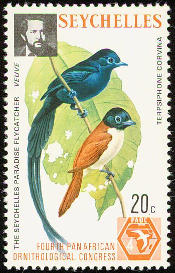 Visibility: public Image owner: none postage 11/8/1976 20c multi dt=birds (1976 Seychelles) d=Terpsiphone corvina wmk=crown & CA spiral perf=14.5 Crops No visible images cropped from this one. Measurements Resolution is unknown. Source Source name: Colnect File URL: http://i.colnect.net/b/1721/611/Seychelles-Paradise-Flycatcher-Terpsiphone-corvina.jpg Uploaded December 27, 2013, 12:52 pm by Stan Shebs |