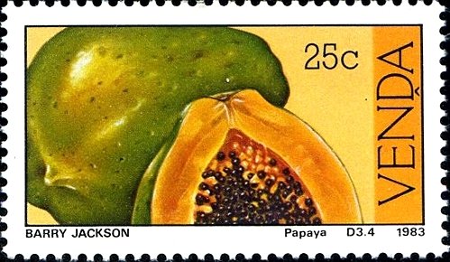 Visibility: public Image owner: none postage 10/26/1983 25c multi dt=fruits (1983 Venda) d=Carica papaya (1983 Venda) unwmk Crops No visible images cropped from this one. Measurements Resolution is unknown. Source Source name: Colnect File URL: http://i.colnect.net/b/1519/703/Papaya-Carica-papaya.jpg Uploaded December 27, 2013, 10:37 pm by Stan Shebs |