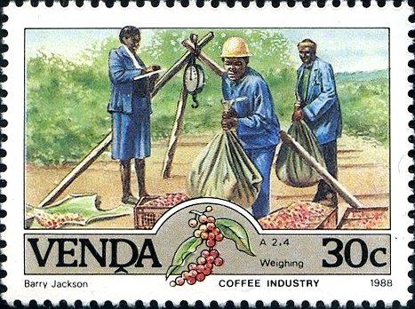 Visibility: public Image owner: none postage 1/21/1988 30c multi issue=Coffee Industry unwmk Crops No visible images cropped from this one. Measurements Resolution is unknown. Source Source name: Colnect File URL: http://i.colnect.net/b/1519/714/Weighing-bags-of-berries.jpg Uploaded December 27, 2013, 10:37 pm by Stan Shebs |