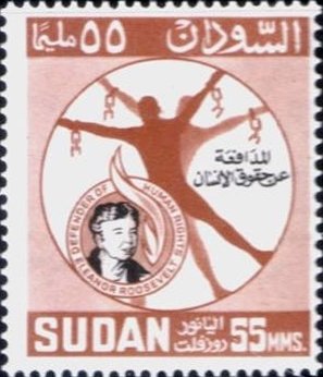 Visibility: public Image owner: none postage 12/10/1964 55m brn&blk d=Eleanor Roosevelt (1964 Sudan) wmk=mult SG perf=14.5x14 Crops No visible images cropped from this one. Measurements Resolution is unknown. Source Source name: Colnect File URL: http://i.colnect.net/b/1870/912/E-Roosevelt-1884-1962.jpg Uploaded December 28, 2013, 2:08 am by Stan Shebs |