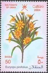 Visibility: public Image owner: none postage 1/24/2004 50b multi dt=wild flowers in Oman d=Euryops pinifolius unwmk perf=14.5 Crops No visible images cropped from this one. Measurements Resolution is unknown. Source Source name: Colnect File URL: http://i.colnect.net/b/1541/181/Euryops-pinifolius.jpg Uploaded December 28, 2013, 3:00 am by Stan Shebs |