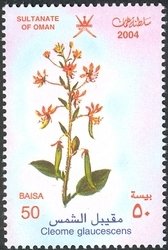 Visibility: public Image owner: none postage 1/24/2004 50b multi dt=wild flowers in Oman d=Cleome glaucescens unwmk perf=14.5 Crops No visible images cropped from this one. Measurements Resolution is unknown. Source Source name: Colnect File URL: http://i.colnect.net/b/1541/183/Cleome-glaucescens.jpg Uploaded December 28, 2013, 3:00 am by Stan Shebs |