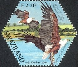 Visibility: public Image owner: none postage 10/11/2004 2.30e issue=SAPOA d=African fish eagle (National Bird of Zambia) Crops No visible images cropped from this one. Measurements Resolution is unknown. Source Source name: Colnect File URL: http://i.colnect.net/b/1696/580/African-Fish-Eagle-Haliaeetus-vocifer.jpg Uploaded December 28, 2013, 4:51 am by Stan Shebs |