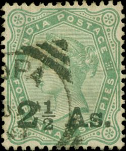 Visibility: public Image owner: none postage 1/1/1891 2 1/2a grn dt=Empress Victoria d=Queen Victoria (1882 India 4a6p) oc=blk on=1882-4a6p wmk=star Crops No visible images cropped from this one. Measurements Resolution is unknown. Source Source name: Colnect (old) File URL: http://i.colnect.net/images/f/1137/811/Surcharged.jpg Uploaded October 11, 2012, 4:26 am by Stan Shebs |