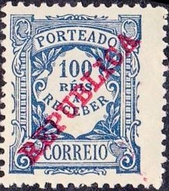 Visibility: public Image owner: none postage due 1910 100r dlbl issue=1910 postage due d=numeral (1904 Portugal) ovpt=REPUBLICA oc=car on=1904-100r unwmk Crops No visible images cropped from this one. Measurements Resolution is unknown. Source Source name: Colnect File URL: http://i.colnect.net/b/1173/464/Postage-Due---Republica-overprint.jpg Uploaded August 21, 2014, 9:10 pm by Stan Shebs |